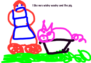 One of the ways I like to incorporate the iPad into ELA in kindergarten is the use of our Drawing Pad app. I type a short sentence using some high frequency words in the Classroom Screen website. The kids type in the sentence (a great way to learn the keyboard) and then they illustrate the sentence. We started this in early October, and it is helping them learn high frequency words as well as become familiarized with the keyboard. They’ve already discovered they can push the spacebar twice to get a period at the end of their sentence. Their illustrations are becoming more creative, and they’ve learned how to save them to SeeSaw. In the examples below, we discussed the sentence and they brainstormed different things they could climb. One of my students even observed that the “b” is silent in climb. One is climbing a ladder and the other a rock wall.